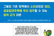 | [논평] 청년의 공공임대주택 입주의 법적 근거를 최초로 마련한 <공공주택 특별법> 일부 개정안의 국토교통위 의결을 환영한다! (0) | 2016.11.10 |