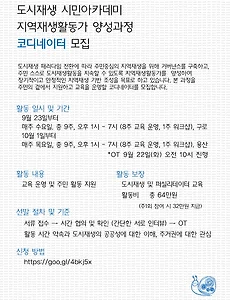 도시재생6 [안내] 제4시 신촌도시재생아카데미 민달팽이유니온이 을 위해서 신촌 도시재생 아카데미 워킹그룹에 참여합니다. 세입자로서의 청년이 신촌에 살아가면서 느끼는 좌절감이 미화되거나 혹은 지나쳐지지 않도록, 우리의 삶의 근육으로 치환하는 작업과 함께 평행선과도 같던 임대차관계를 바꿔보고자 직접 서로를 인터뷰하고 필요의 접점을 찾아 임대차계약서를 바꿔보는 시간을 갖고자 합니다. 우리의 필요를 찾고, 필요를 권리로 만들어가는 작업에 여러분을 초대합니다. 제 4기 신촌 도시재생 아카데미 1. 도시재생, 시작할 때 (10월 10일)- 도시재생의 이해 (이제선 총괄계획가)- 퍼실리테이터 주제 강연 2. 청년, 시작할 때 (10월 24일)- 신촌도시재생활성화계획 설명- 퍼실리테이터 의제 중심 워킹 그룹 구성 3. 지금, 시작할 때 (10월 31일)- 외부강사.. 2016. 10. 6. [모집] 도시재생 시민아카데미 지역재생활동가 양성과정 코디네이터 도시재생 패러다임 전환에 따라 주민중심의 지역재생을 위해 거버넌스를 구축하고, 주민 스스로 도시재생활동을 지속할 수 있도록 지역재생활동가를 양성하여 장기적이고 안정적인 지역재생 기반 조성을 목표로 하고 있습니다. 본 과정을 주민의 곁에서 지원하고 교육을 운영할 코디네이터를 모집합니다. 도시재생 관련한 교육을 받고 또 스스로 주도적으로 참여하는 코디네이터에요! 많지는 않지만 약간의 활동비도 있습니다. 교육도 듣고 주민들 곁에서 지역 활동고 고민해보는 자리에 민달팽이유니온과 더 알차고 내실있는 프로그램을 운영할 여러분들을 기다립니다. 도시재생 관련 교육과 주민들을 지원하실 분들은 많이 관심 가져주세요! 자세히 및 신청 https://goo.gl/4bkj5x 2015. 9. 18. [교육] 도시재생 아카데미 지역재생활동가 양성과정 민달팽이주택협동조합/민달팽이유니온이 구로와 용산의 도시재생을 지켜보며 주민들이 주도할 수 있는 교육 과정 운영을 맡아 진행하고 있습니다. 공공주택이 지역에 들어설 때마다 주민들이 반대하는 이유를 찾고 상생하는 지역, 도시를 만들기 위해서 서로의 필요를 찾고 나아가는 과정을 함께 하려고 합니다. 많은 참여 부탁드립니다! 도시재생 패러다임 전환에 따라 주민중심의 지역재생을 위해 거버넌스를 구축하고, 주민 스스로 도시재생활동을 지속할 수 있도록 지역재생활동가를 양성하여 장기적이고 안정적인 지역재생 기반을 조성하고자 하오니 관심있는 주민들께서는 아래에 신청서를 작성하여 9월 21일(월)까지 민달팽이 주택협동조합 신청서를 제출해주시기 바랍니다.(문의 : 070 - 4145 - 9120 , 010 - 5421 -1.. 2015. 9. 13. [포럼후기] 4월 29일 공유자적 포럼 꼭 공간과 건물은 이전의 것들을 없애고 새 것(NEW)이어야 할까요? 짓기 보다는 고치기, 없애기 보다는 다시 활용하기로 공간을 재구성하는 다양한 경험들을 들으러 다녀왔습니다. 개인적인 경험으로 그치는 것이 아니라 제도적, 사회적으로 변화시킬 수 있는 것들을 탐색해보는 포럼에 다녀왔습니다. 29일 오전 10시, 은평사회적경제허브에서 열린 공유자적 포럼은 PPS로 유명한 에단 켄트가 직접 참석하여 국내의 다양한 사례들을 소개하는 자리였습니다. PPS, Project for Public Spaces는 미국에서 1975년에 만들어진 비영리 기관입니다. '장소만들기(Placemaking)'의 선두주자로 1975년 설립된 이후 전 세계의 3,000개가 넘는 커뮤니티 프로젝트에 참여해왔습니다. 청년 주거 문제 역시.. 2014. 5. 2. 이전 1 2 다음