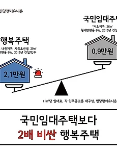 행복주택13 [이슈브리핑] 청년에게 유독 가혹한 행복주택 본 자료는 2016 국토교통부 국정감사 시, 조정식 국토교통위원장실의 의뢰를 받아 작성한 정책보고서입니다. 보고서는 자유롭게 열람하실 수 있으며 자료 인용 시 출처를 밝혀주시기 바랍니다. 본 보고서가 청년 주거 실태를 알리고 청년 주거 정책의 방향을 결정하는 데에 기여하기를 바랍니다. ▶ ▶ 행복주택, 보증금은 높고 임대료는 비싸, 청년들에게 유독 가혹해 ◀ ○행복주택은 여타의 공공임대주택과 다르게 임대료가 결정됨- 행복주택은 다른 공공임대주택과 달리 공급원가가 아닌 유일하게 주변 시세를 기준으로 임대료를 결정하고 있고 대학생, 사회초년생, 신혼부부, 고령자, 수급자 등에 대해 60~80% 범위 내에서 각각 다르게 임대료를 결정하고 있음- 이 권한은 국토교통부 장관 고시 사항이므로 정부의 의지만 있으면 .. 2016. 10. 5. [포럼] 1인가구의 주거권 보장을 위한 시민권 부여하기 서울NPO의제포럼 1인가구의 대안적 주거 제6차 라운드테이블 "1인 가구 주거권 보장을 위한 시민권 부여하기" 일시 : 10월 29일(목) 7시~9시장소 : 스페이스 노아 위키룸 (시청 근처, 서울 중구 세종대로16길 23) 주제발표▷ 시민권의 측면에서 본 주거권의 현 주소, 박이대승(정치스튜디오) 사례발표 ▷ 청년 대상의 공공주택을 둘러싼 갈등과 해법, 정남진(민달팽이유니온) 자유토론 ▷ 민주적 의사결정과정의 이상적 모델에 대한 사회적 논의 김경용 (정의당 청년학생위원회), 신지예 (청년녹색당, 오늘공작소), 정다영 (이웃기웃 청년 주거협동조합), 김혜란 (공릉동 희망하우징 북카페 마을N마디), 박아현 (연세대학교 전 사회과학대 학생회장), 박세훈 (고려대학교 총학생회 사회연대국장) 2015. 10. 28. 행복주택, 함께 다시 쓰다 + 행복주택 제도개선 간담회 공공주택의 가치는 주거권 보장과 함께 불평등한 사회를 교정해주는 역할을 하는 데에서 나옵니다. 공공주택인 행복주택은 청년들에게 최초로 공급되기에 앞으로 청년 대상의 공공주택에 기준선이 될 전망입니다. 그렇다면, 공공주택의 가치를 되새기면서 행복주택이 청년들을 비롯한 사회에 긍정적인 영향을 끼칠 수 있어야 할 것입니다.그래서, 민달팽이유니온이 행복주택의 가치, 기준, 과정을 함께 다시 씁니다. 22일(화) 국토교통부와의 제도 개선 간담회가 있습니다. 이 날, 그동안 논의를 진행해오고 20일(일)에 함께 다시 쓴 행복주택의 정책을 민달팽이유니온 제안합니다. 여러분의 힘과 모임이 절실한 때입니다. 최경환 경제부총리가 가계 내에서 부를 이전하는 증여세 인하를 검토하고 있습니다. 이미 전체 부의 88%가 부동산인.. 2015. 9. 18. 행복주택, 함께 다시 쓰다 일시 : 9월 20일(일) 오후 4시 - 6시장소 : 달팽이집 2호 (남가좌동 330-28)신청 : http://bit.ly/행복주택 나누는 이야기행복주택을 둘러싼 두 가지의 쟁점과 하나의 어려움 임경지 민달팽이유니온왜 행복주택인가, 그리고 무엇을 고쳐야할까이태영 신촌민회‘주민 반대’라는 프레임의 실체와 다른 미래를 그리는 전략권지웅 민달팽이유니온행복주택 추진 3년 차, 청년을 바라보는 시선과 청년의 위치 채우는 이야기우리가 쓰는 진짜 행복주택오픈테이블행복주택의 입주기준과 임대료 수준 개선안지역과 상생하고 세대 간 협력하는 공공자산인 행복주택배제되는 사람 없이 민주적으로 결정하는 도시계획 먹고 사는 이야기달팽이집 2호 앞 평상에서 도란도란 나눠먹는 밥 2015. 9. 15. 이전 1 2 3 4 다음